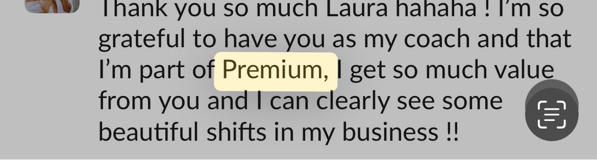 Premium is my Signature 8 Week Marketing & Messaging Experience that gives you the EXACT blueprint & personal support to TRIPLE your Lead Flow, get your existing audience engaged & talking back, and signing 1:1 clients WEEKLY & *PEACEFULLY